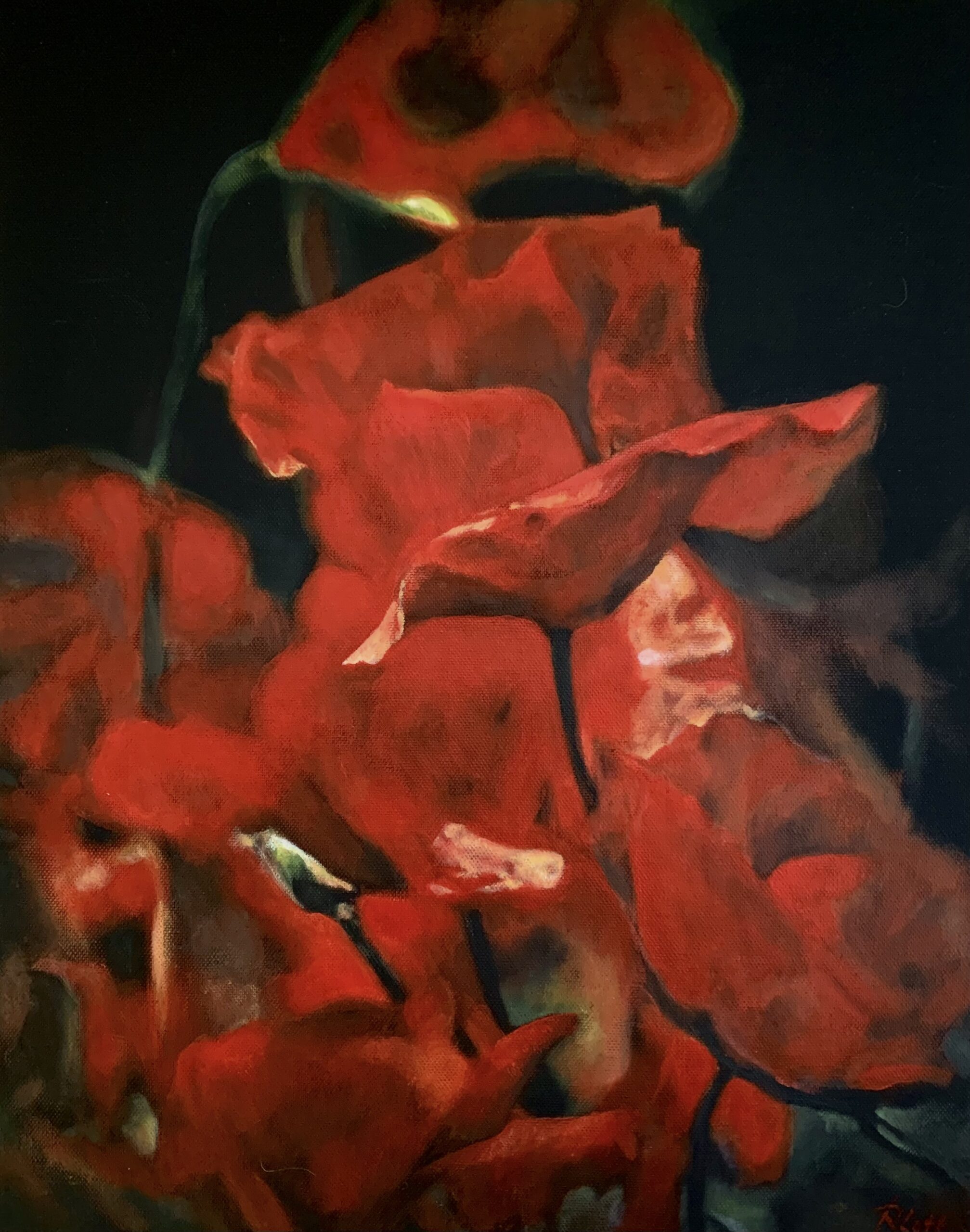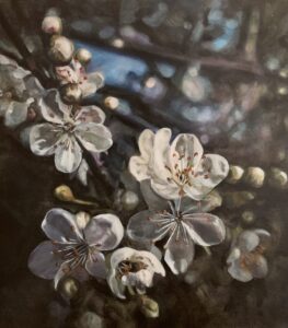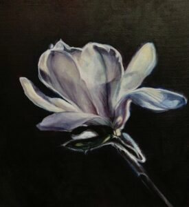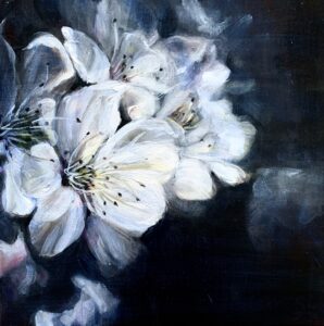 Neben farbstarken abstrakten Bildern finden sich in jüngster Zeit vor allem zahlreiche florale Motive. Insbesondere nach Fotografien von Katja Ullrich entstehen sanfte, leuchtende und detailreiche Blütenbilder auf Leinwand. Was beide Künstlerinnen verbindet ist die Liebe zur Natur. Die Ausstellung bietet nun erstmals die Gelegenheit, dass sich Malerin und Fotografin bei der Vernissage persönlich kennenlernen.
